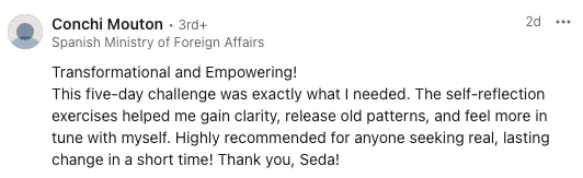 Each day’s session is approximately 30 minutes long. Short enough to fit into your busy schedule, but powerful enough to create real shifts. You’ll receive practical insights and simple, effective exercises to keep the momentum going between sessions.